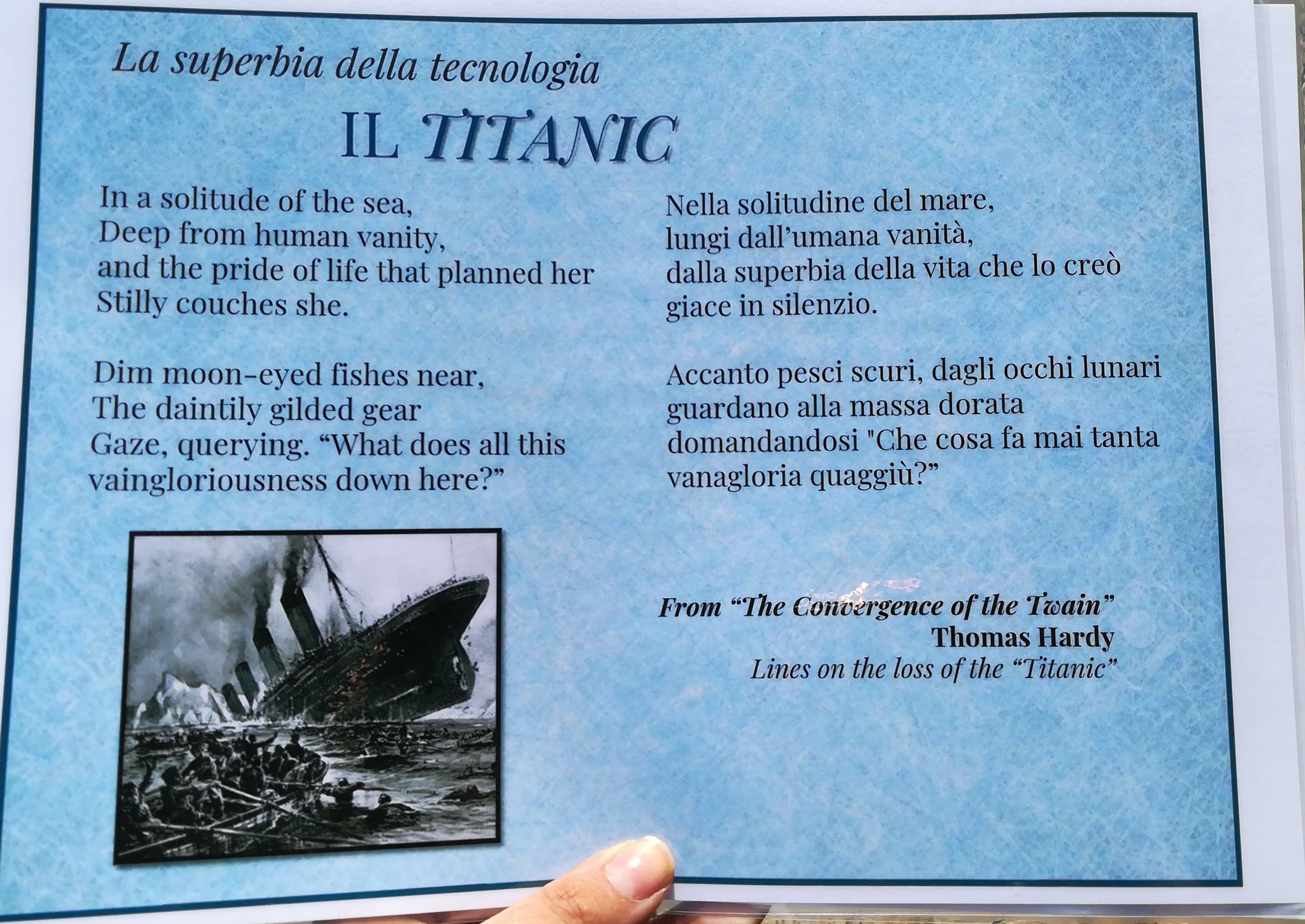 Arrivati alla T, ecco l’esempio, “transatlantico > Titanic“. Da bambini curiosi quali eravamo la domanda su che cosa fosse questo Titanic arrivò molto presto. La maestra ci spiegò brevemente che si trattava di una nave che era affondata tanti anni fa, e che ci avevano anche fatto un film, quindi magari potevamo chiedere ai nostri genitori di farcelo guardare.